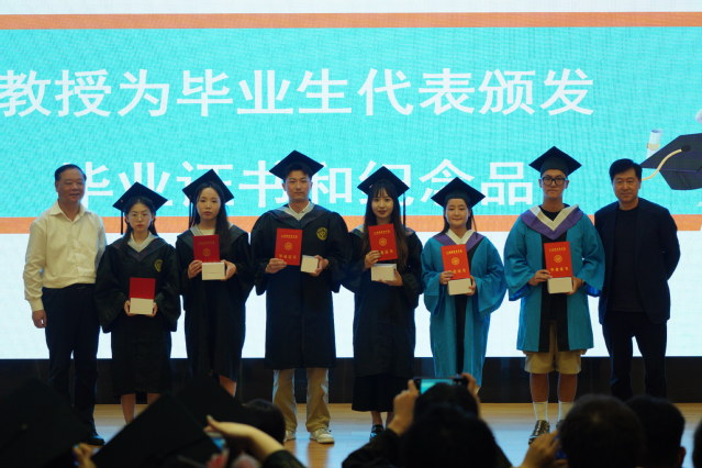 周进祝教授和李哲旭副教授共同为毕业生代表颁发毕业证书和纪念品。毕业生们从教授手中接过的不仅仅是证书和祝福,更是无限期许,也象征着对老一辈永远谦虚、爱岗敬业、无私奉献精神的传承。