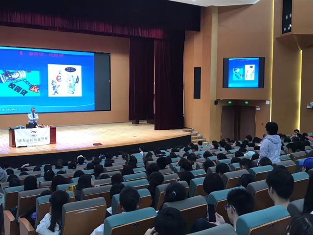 为创建平安校园,维护大学生人身、财产安全,提高大学生的安全防范意识与自我保护能力。2019年10月16日浦东新区张江高校派出所王子田警官应邀为我院同学进行大学生安全防范教育讲座。