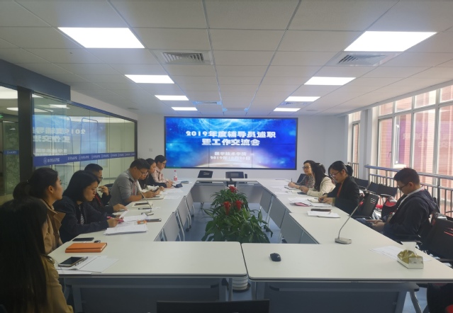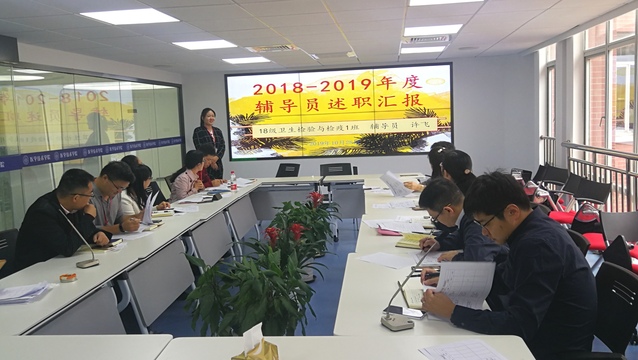 2019年度医学技术学院辅导员述职暨工作交流会于10月28日在北苑3号楼平台会议室举行,党总支书记兼院长刘敏娟、副院长陈凤贞、副书记高晓霞,工会主席陆俊杰,党建员何双泉出席本次工作交流会并担任评委。医学技术学院全体专兼职辅导员围绕带班情况、分管工作、特色工作等开展述职答辩。