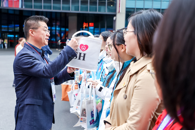 多彩深秋,黄浦江畔再迎盛会。第七届中国国际进口博览会的大幕徐徐拉开,85位健康“小叶子”们各司其职工作了2天,分为20个工作小组,兵分四路,在四片“叶子”里开展健康科普、规劝违规吸烟等志愿服务。目光所及之处均有身着蓝马甲、手持宣传牌、腰背急救包的身影。健康“小叶子”们正以专业的服务、昂扬的精神迎接八方来客,以最好的精神风貌践行“爱卫健促,健康进博”的理念,在进博会的舞台上彰显当代中国青年的风采。