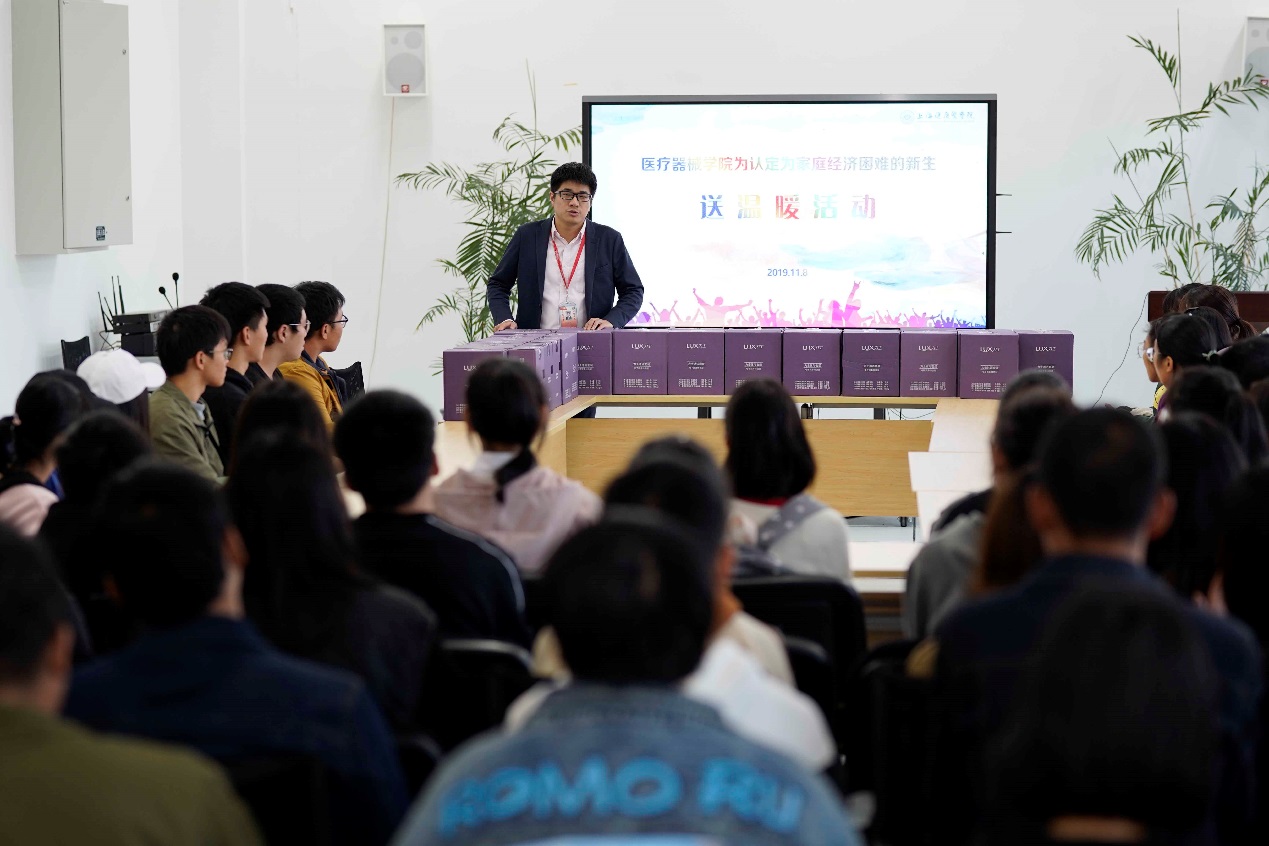 11月8日16时,医疗器械学院为新认定为家庭经济困难的新生生送温暖活动在新南苑18号楼506会议室开展,学院党总支副书记吕杰老师,团总支书记荀琳老师,资助专员王海峰老师以及44名家庭经济困难的新生参加了活动。