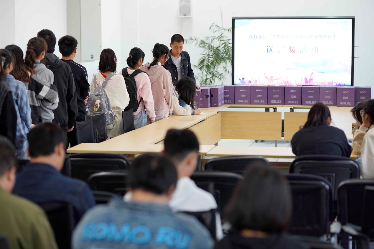 扶贫先扶智,“送温暖”活动旨在让受助同学感受到来自学校、学院大家庭的关心与温暖,希望同学们能互助互爱,提高他们的科技文化素质及自我发展能力,从根本上改变这些学生及其家庭的命运。“让更多青少年敢于有梦、勇于追梦、勤于圆梦”,让每个青少年都为实现中国梦增添强大青春能量。(医疗器械学院)