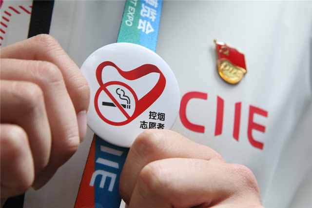 他们时刻牢记自己的使命:“为他人健康,创无烟进博”。于是,这群“小叶子”佩戴着独一无二的控烟徽章,始终面带微笑,从容大方、不厌其烦地引导想在展馆里吸烟的参观者去到最近的户外吸烟点,耐心地与吸烟者交流沟通,为场馆内的控烟工作付出自己的全部力量。