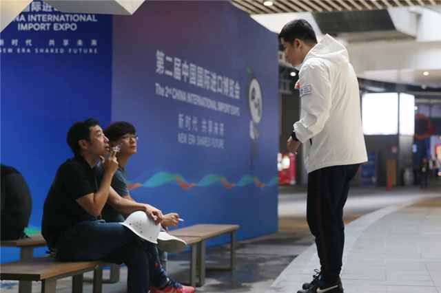 为了使场馆内没有一个烟蒂、没有一股烟味,控烟劝阻岗的“小叶子”们曾暴走在“四叶草”里的每一个角落,去劝阻那些“老烟民”前往指定的户外吸烟点。期间,还要苦口婆心地运用专业知识为他们宣传吸烟的危害,尽自己所能为来宾普及吸烟危害和控烟的重要性,默默维护进博会美好整洁的环境。