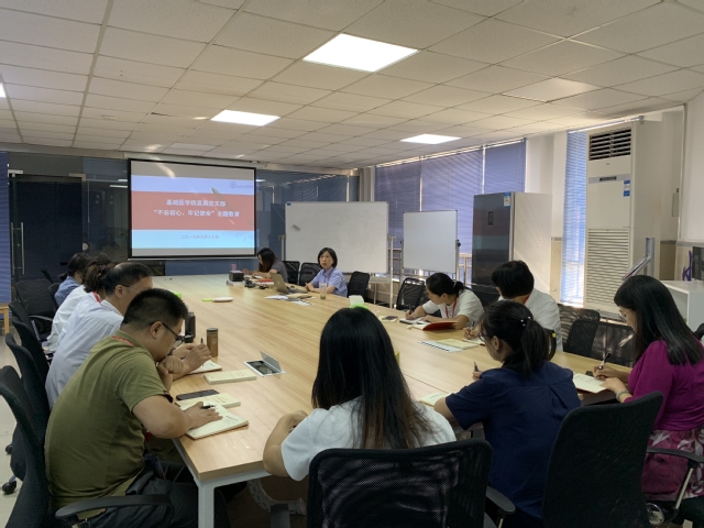 9月12日下午,基础医学院直属党支部全体党员在4号楼6楼大厅会议室,分组开展“不忘初心、牢记使命”动员会,拉开了“不忘初心、牢记使命”主题教育的序幕。