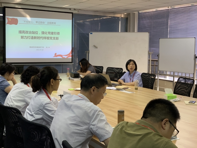 本次会议围绕“提高政治站位,强化党建引领,努力打造新时代样板党支部”的主题,从充分认识开展“不忘初心、牢记使命”主题教育的重要意义;结合样板创建,认真抓实“不忘初心、牢记使命”主题教育;目前的困难等三方面进行。程伟书记指出,全体党员要从“四个着力”入手,即着力抓好学习教育,深化初心使命认识;着力抓好调查研究,实事求是贴近民心;着力抓好检视问题,对标补缺找准差距;着力抓好整改落实,提升能力推进工作。每位党员要通过主题教育,提高自身的理论素养、思想水平、工作能力;要了解教职工的心声与诉求,提高教职工的归属感、幸福感;要反思理想信念、精神状态、执行规定、工作作风、纪律观念等五方面,聚焦重点问题,加之改进提升;要提高党支部的组织力、战斗力和创造力,围绕“一个中心,两个加强”推进工作的开展。程书记还提到,虽然我们还存在困难,但我们要打“团体赛”、干“集体活”、展现“软实力”、转化“生产力”,在工作中创新、突破、超越。