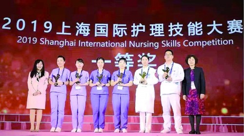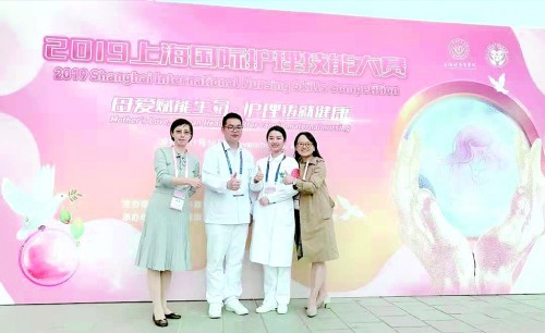 王佳琪(左二)在2019上海国际护理技能大赛赛场上。本版图片均由受访者提供