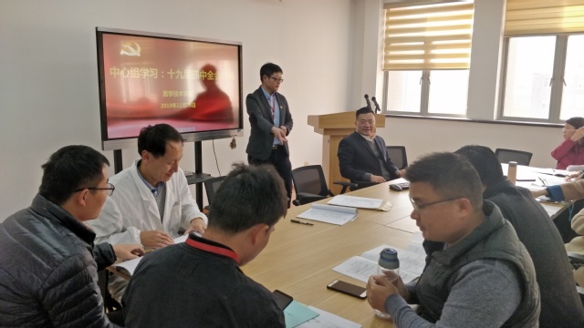 2019年11月28日,医学技术学院在4507开展题为“学习十九届四中全会精神”中心组学习。