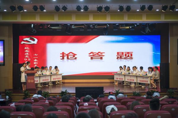 随后,进行了“两学一做”知识竞赛决赛。行政二支部、学生党支部、骨科妇产科支部、行政一支部、内儿党支部、门急诊党支部6支代表队在初赛中脱颖而出进入决赛。决赛内容包括党章、党史、《中国共产党纪律处分条例》、《中国共产党廉洁自律准则》及习近平总书记系列重要讲话精神等,竞赛分为必答题、抢答题和风险题。比赛中,各代表队精力集中,反应敏捷,竞赛气氛紧张激烈,大家你追我赶,抢答精彩迭出,台下掌声不断。最终由行政二支部代表队斩获第一名,学生党支部代表队、行政一支部代表队获第二名,门急诊支部、骨科妇产科支部、内儿党支部获第三名。