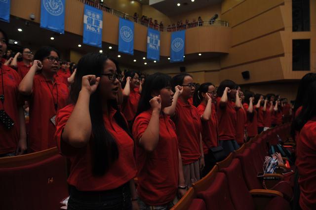 最后,护理学院实践教研中心主任周丽君带领全体毕业生,重温了医学生誓言,庄严的宣誓声响彻整个会场。