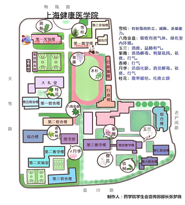 为了让新生更早更清楚地了解校园布局,学生会干部制作药学特色地图,即地图上不仅有报道、住宿、开班会的教学楼,更有中药植物与作用、中药实训室、药剂实训室等标示,让药学新生在课余时间可以参照药学院特色地图来认识校园、认识药用植物,从生活中对专业产生浓厚兴趣。