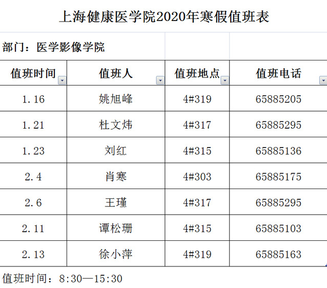 医学影像学院2020年寒假值班安排