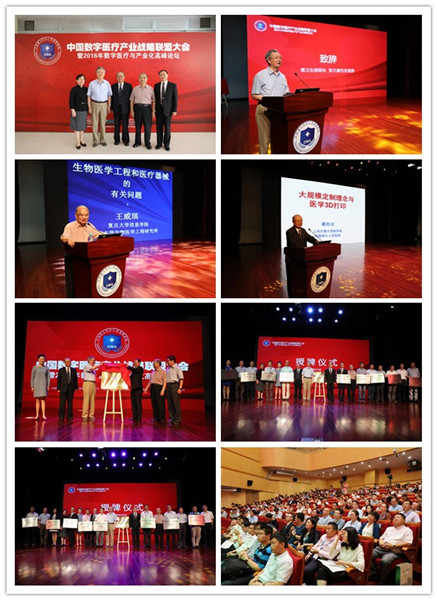 论坛上,戴尅戎院士发表了《大规模定制与医学3D打印》的演讲;王威琪院士发表了《生物医学工程和医疗器械的有关问题》的演讲;数字化医学专业委员会主委、第九人民医院党委书记沈国芳教授发表《口腔颅颌面畸形的精准整复外科:现状与未来》的演讲;上海西门子医疗器械有限公司夏风华总经理发表《整合的医疗世界》的演讲;上海市医疗器械检测所首席技术总监黄嘉华先生发表《我国数字医疗产业标准化进展》的演讲;东方证券首席分析师季序我博士发表《医疗产业投资与并购》的演讲。各院士、专家们通过智慧的大餐分享真知灼见,展开头脑风暴,推动数字医疗健康发展。