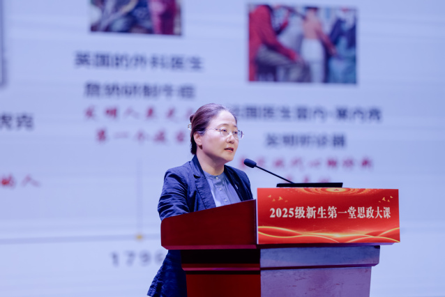 在第一篇章中,郭永瑾带领同学们共同回顾了人类医学的发展历史,这其中既有近现代医学史上的里程碑事件,又有我国中医学领域的名家辈出,还有西医在近代传入中国后涌现的医学大家。这些具体而生动的历史脉络,让同学们真正触摸到医学的起源与传承之根。在第二篇章中,郭永瑾带领同学们共同展望了未来医学科技的发展趋势,从近三年与医学相关的诺贝尔奖获奖情况到当下非常火热的三大未来科技(脑机接口、智能机器人、人工智能)在医学领域中的创新探索,她强调,未来已来,同学们要拥抱变化、拥抱未来。在第三篇章中,郭永瑾号召全体新生传承伟大抗战精神,坚定守护家园、保卫人民的初心使命,做新时代的“健康人”,志存高远,追求卓越;健全人格,磨砺意志;博学善思,践行致远;强健体魄,兴趣相伴;脚踏实地,仰望星空。