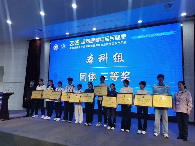 我校康复学院2022 级康复物理治疗专业傅佳文、周子怡、徐婕、丁佳沩四位同学组成的参赛队伍,在全国71所高校114支队伍的激烈角逐中脱颖而出,凭借扎实的专业功底、娴熟的实践技能与默契的团队协作,成功斩获团体三等奖,傅佳文、周子怡两位同学更荣获个人二等奖,充分展现了我校学子的过硬专业素养与康复学科的教学成效。