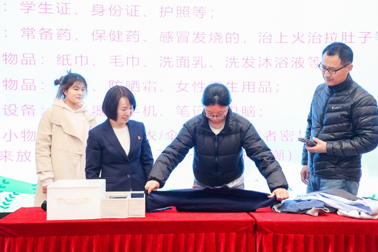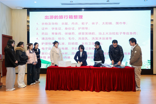 箱子里究竟装着什么?在“劳模进校园”宣讲现场,朱春南就四张清单、三只环保袋、两条卷发、一只常用药品袋、一堆出行衣物的收纳和整理,有条不紊,娓娓道来。以此告诉青年学子,收纳不是简单的叠衣,而是赋予生活秩序;出行不是匆忙赶路,而是向世界传递温度。通过朱春南的细心讲述,在座的师生在现场作了实践和尝试,反响热烈,并对今后的出行和收纳有了清晰而良好的规划。