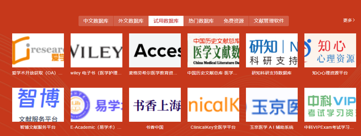 更多优质试用资源请访问学校图书馆官网https://lib.sumhs.edu.cn/【常用数据库】——【试用数据库】
