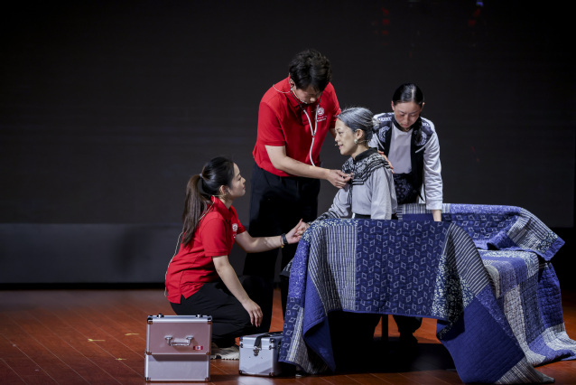 在现场,演出以细腻的叙事、真挚的演绎,将中国医者的责任与担当、坚守与传承娓娓道来,生动展现了中国医疗卫生事业的发展脉络与医者精神的时代传承,为现场观众奉献了一堂沉浸式“医学思政大课”。