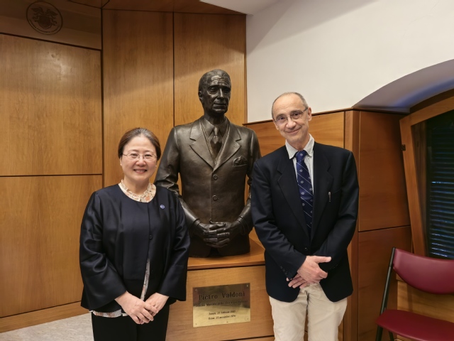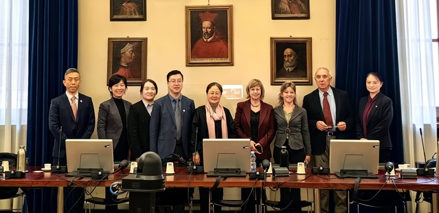 代表团首站访问意大利高等卫生研究院,与院长洛克·白兰图教授及多个部门负责人会谈。双方围绕食源性疾病、心血管疾病、公共卫生、老龄化照护及癌症等议题展开讨论,就加强联合培养、科研合作与师生交流达成一致。代表团还访问了意大利国家血液中心与移植中心,了解其运行模式。意大利高等卫生研究院是意大利最高国立医疗卫生科研机构,曾有4位诺贝尔奖获得者在此工作,该院广泛开展国内外教育合作与培训。