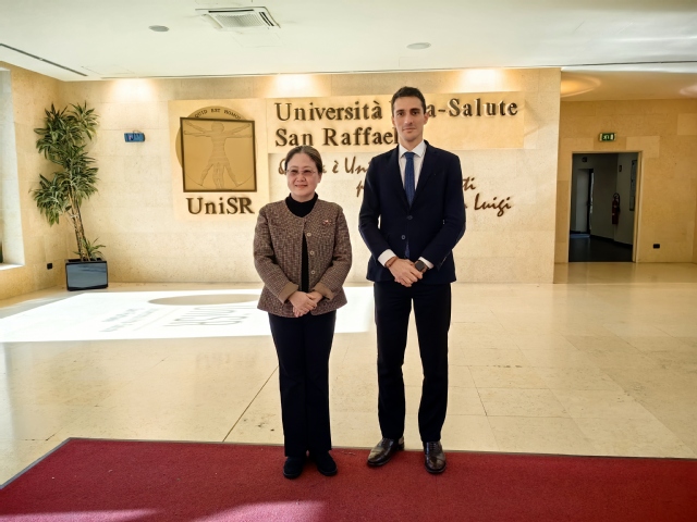 代表团还访问了位于米兰的圣拉斐尔科学研究医院。在与该院国际交流部的会谈中,双方重点探讨了师生短期观摩与实习项目。该医院隶属于意大利第一大医院集团,集诊疗、临床研究和教学于一体,以尖端医学研究和临床实践著称,其医疗水平在欧洲排名前三,科研经费在欧洲医院中排名第一。圣拉斐尔科学研究医院代表意大利加入欧洲大学-医院联盟,并于2023年担任该联盟主席医院。该医院于1996年创办附属大学圣拉斐尔生命健康大学,设有医学院、哲学院和心理学院,其医学生数量在意大利排名第二,国际生数量位居全意第一。