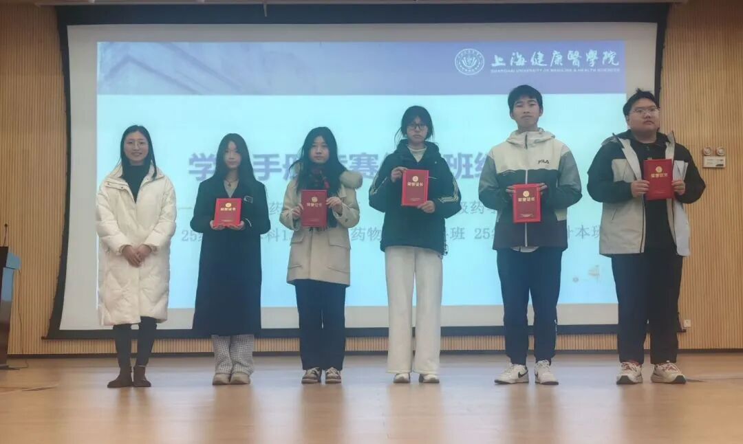 表彰环节中,学院正式公布学生手册竞赛、“药英互鉴・译写共优”写译作品大赛、学习生活 Vlog 记录活动等多项评比的获奖名单。其中,25 级药学本科 2 班等 5 个班级分获学生手册竞赛一、二、三等奖;杨佳等 6 名同学获评写译作品大赛优秀范文;郑岚月等 2 名同学斩获 Vlog 记录活动最佳创意奖。学院团总支书记赵川乐为获奖集体与个人颁奖,鼓励大家发挥榜样示范引领作用,带动全院形成比学赶超的良好氛围。