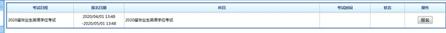 4.在考试报名栏目中对应“2020届毕业生英语学位考试”,点击右侧“报名”。