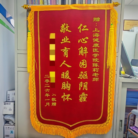 “陈老师就像一盏灯,在我迷茫的时候照亮了前行的路。”提及陈莉老师的帮助,李同学满是感激。从日常的学业指导到生活中的暖心关怀,从心理压力的疏解到未来发展的指引,陈莉老师的点滴付出,学生都看在眼里、记在心里,于是便有了赠送锦旗这一暖心举动。