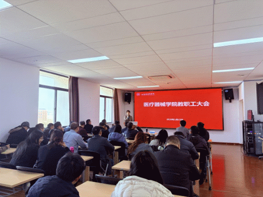为强化师德师风建设,总结过往工作成效,部署新学期重点任务,2026年1月15日中午12:15,医疗器械学院在南苑18号楼410会议室召开全体教职工大会。会议由学院党总支书记郑学文主持,全体教职工齐聚一堂,共话发展、共绘蓝图。