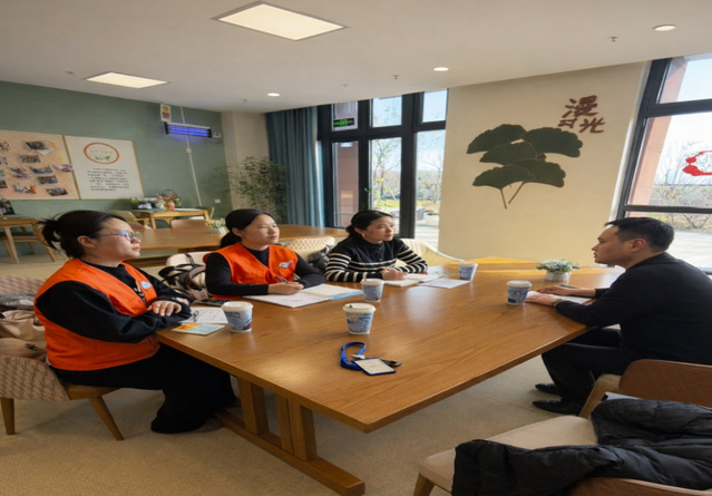 王院长及其团队系统介绍了机构规模、认知症照护模式、照护人员配置及培训、运行机制等,并带领志愿者们实地参观“记忆咖啡馆”、艺术工坊、园艺疗愈花园等模拟生活场景功能区,现场观摩怀旧疗法、音乐疗法等特色干预区域。机构依据ADL评估等结果实施分级护理,联动华山医院、仁济医院神经内科、康复科专家定期巡诊,形成“医、护、康、养”一体化服务。