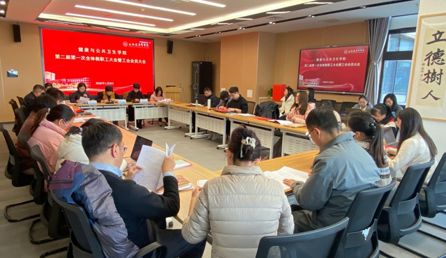 2026年1月8日,健康与公共卫生学院第二届第一次全体教职工大会暨工会会员大会在南苑21号楼302室举行。校工会常务副主席凌文惠、学院副院长张浩分别受邀作为特邀代表和列席代表参会。会议由学院工会主席邱晨主持。