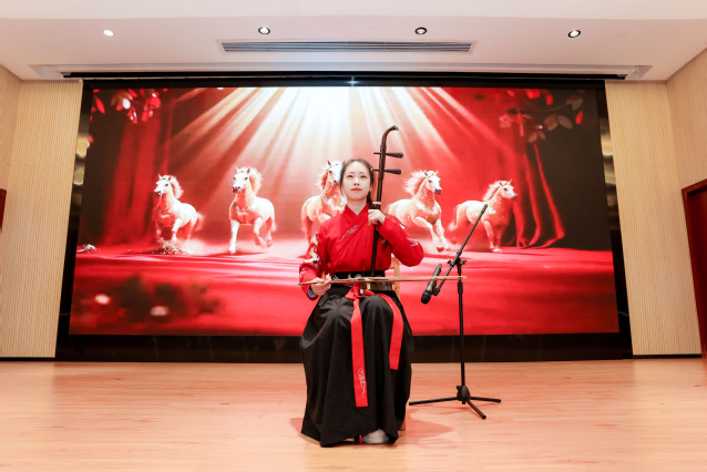 报告厅内,弦歌悠扬传雅韵,舞姿翩跹启新篇。我校燕起舞蹈团带来灵动雅致的舞蹈《彩云之南》,婉转的韵律与优美的舞姿正式奏响新春序曲。精彩开场后,王庆华致欢迎辞,向五校留校过年的学子们送上亲切真挚的新春问候。留学生代表带来太极表演《岁启乾坤,武韵新声》,充分彰显中华优秀传统文化的深厚底蕴与国际影响力;二胡独奏《赛马》旋律激昂、节奏铿锵,将骏马奔腾的豪迈气势展现得淋漓尽致;合唱《我喜欢》以青春洋溢的歌声,传递出学子们对生活、对未来的无限热爱与美好憧憬。五所高校的学生代表依次登台,分享新春愿景、传递校际情谊与真挚祝福。陈睦,王庆华共同为学生代表送上满载关怀的新春慰问礼包,并共同敲响新年贺岁鼓声,铿锵有力的鼓点里承载着对2026年教育事业发展的美好期盼与奋进愿景。