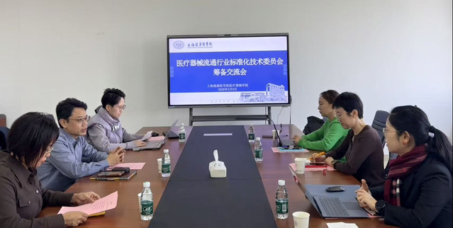 2026年3月6日上午,医疗器械流通标准化技术委员会筹备研讨会在上海健康医学院南苑18号楼506会议室顺利召开。会议由医疗器械学院副院长李萍主持,药品流通行业标准化技术委员会副秘书长于宏、中国医药商业协会秘书处主管孙瑶、协会专家朱建云,医疗器械学院院长杨晖、教师许迎玲、李芬静等参会。
