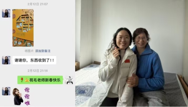 寒风未能阻挡学部工会成员们关怀的脚步,分组前往青年教职工家中,手中提着精心准备的慰问品开展面对面慰问,针对一些因特殊原因不便见面的退休教职工,通过线上的方式开展云端慰问,让关怀不因距离而缺席。线上慰问时,叮嘱老教师保重身体。