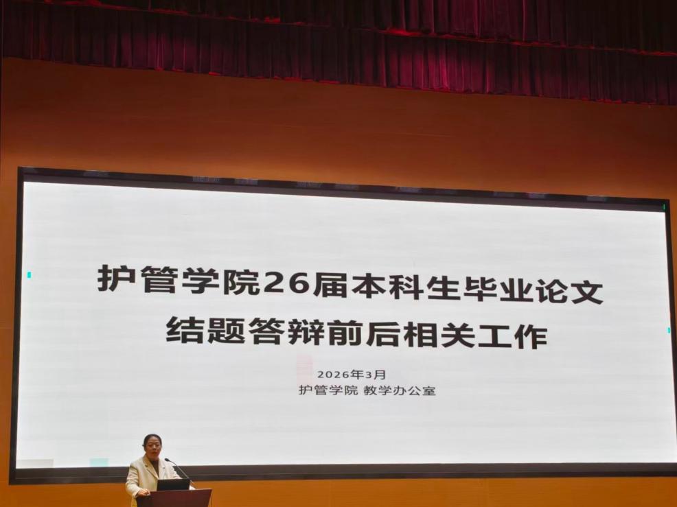 为进一步规范本科生毕业论文管理,明确结题答辩前后各项工作要求,确保2026届本科生毕业论文工作平稳有序推进,上海健康医学院护理与健康管理学院(以下简称“护管学院”)教学管理办公室于2026年3月26日组织召开了毕业论文答辩前后相关工作专题讲座。本此讲座由教学管理办公室主任吉洁老师主讲,2026届护理学、助产学、健康服务与管理专业全体毕业生参加。