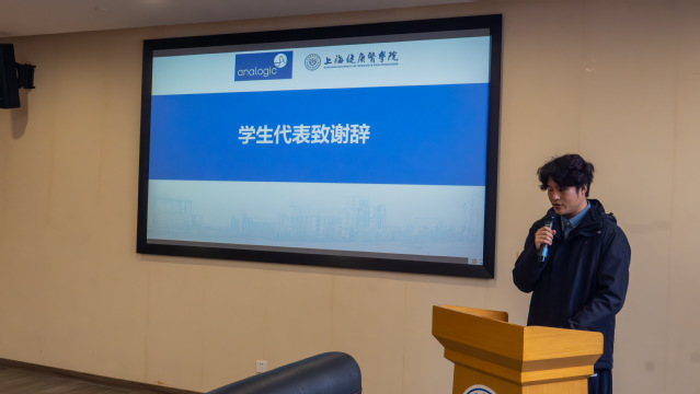 仪式上,李晓欧与黄河清先后致辞。李晓欧代表学院向长期以来关心支持学院教育事业发展的安络杰医疗器械(上海)有限公司表示感谢!他讲到,“企业设立奖学金和奖教金,不仅是对优秀师生物质上的奖励,更是对他们勤奋治学、潜心育人的精神嘉奖,是企业在自身发展的同时,积极履行社会责任、回馈社会、支持教育事业的生动体现。”学院对企业的这份慷慨与远见深感敬佩,未来将更加坚定为行业培养优秀人才、办好人民满意教育的信心与决心。黄河清介绍了企业发展蓝图与未来人才需求,也回顾了与学院合作的历史,他代表企业高度认可学院人才培养质量,也表达了继续深化校企合作、共育行业人才的诚挚意愿。