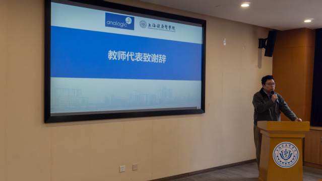仪式上,李晓欧与黄河清先后致辞。李晓欧代表学院向长期以来关心支持学院教育事业发展的安络杰医疗器械(上海)有限公司表示感谢。他讲到,“企业设立奖学金和奖教金,不仅是对优秀师生物质上的奖励,更是对他们勤奋治学、潜心育人的精神嘉奖,是企业在自身发展的同时,积极履行社会责任、回馈社会、支持教育事业的生动体现。”学院对企业的这份慷慨与远见深感敬佩,未来将更加坚定为行业培养优秀人才、办好人民满意的教育的信心与决心。黄河清介绍了企业发展蓝图与未来人才需求,也回顾了与学院合作的历史,他代表企业高度认可学院人才培养质量,也表达了继续深化校企合作、共育行业人才的诚挚意愿。