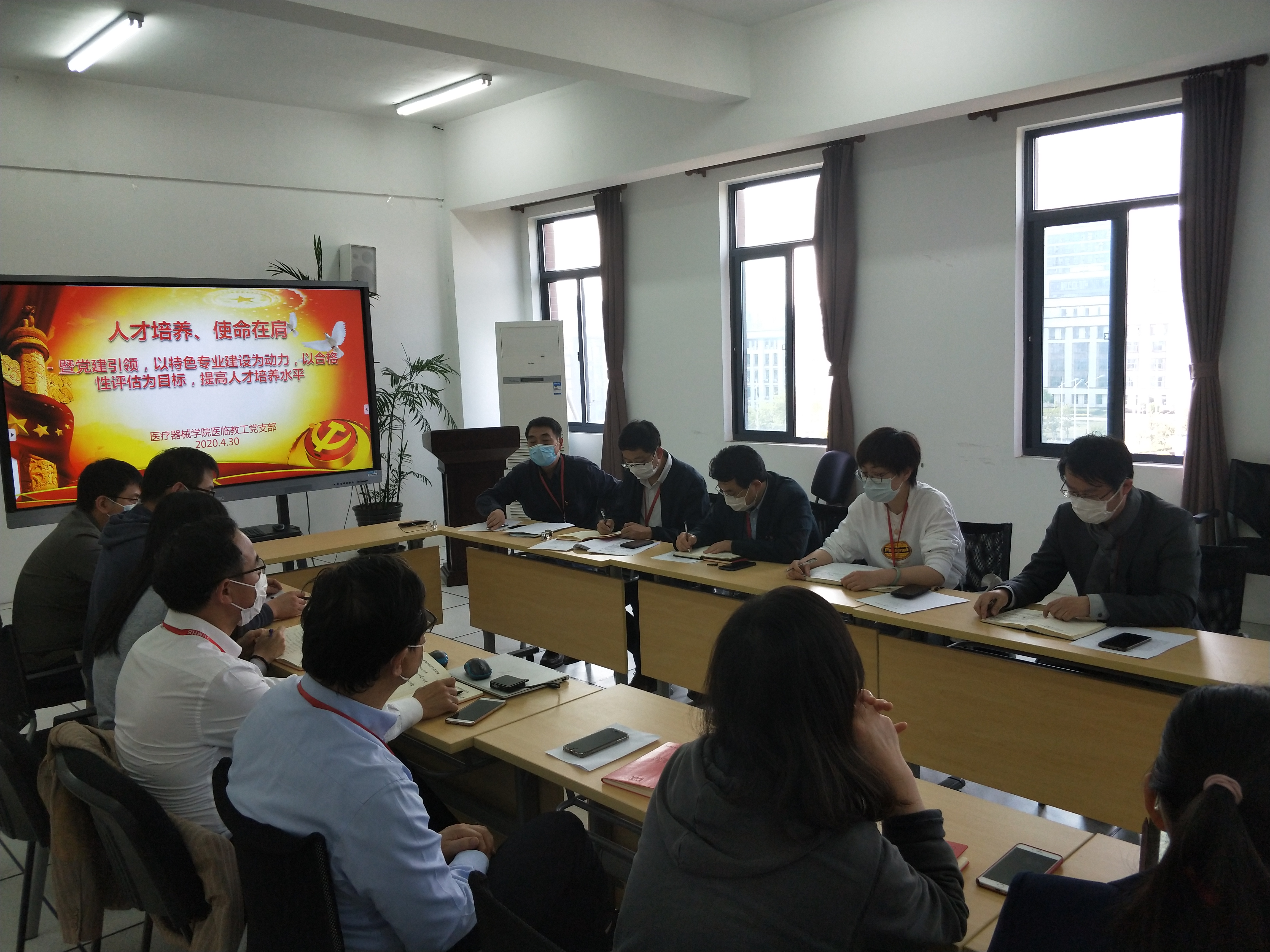 医临教工党支部于2020年4月30日下午三点至四点半,在18号楼506召开“人才培养、使命在肩”主题党日,暨党建引领,以特色专业建设为动力,以合格性评估为目标,提高人才培养水平主题会议。校纪委办施奇副处长和学工部纪检委员校团委书记顾斐雯老师会前检查了支部前期开展的主题党日、组织生活等相关材料和记录,对整场会议进行了全程督查并给出了反馈。会议由医临教工党支部纪检委员尚昆主持。