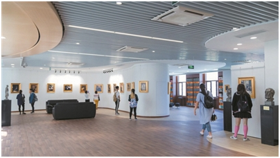 校园是浸润生命成长的空间,上海健康医学院,着重培养医学生健康医疗“硬知识”的同时,健全医学生人文情怀的“软实力”。学校在校园建设中融入文化空间的打造,建设健康文化长廊、医学人文油画和雕塑展厅、现代医学教育博物馆等,为学生设计充满人文氛围的校园。