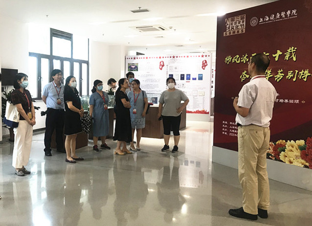 耿铭主任亲自担当解说员,以翔实的历史资料、热情的解说技巧,带领大家参观了“栉风沐雨七十载 杏林群芳别样红”主题展。主题展以时间为脉络,全面反映了学校在七十年医学人才培养的历史中,所走过的曲曲折折的发展历程;系统总结了上海健康医学院建校五年来凝心聚力、艰苦创业、砥砺前行所取得的经验和成绩。从主题展中可以看到学校与国家同步的发展史,充分体现了人民对美好生活追求的向往。1950年,由陈毅市长签发成立上海市卫生人员训练所;1970年上海市卫生学校整体搬迁云南楚雄;2015年,由三校合并组建成“上海健康医学院”,既有“中国护士之母”伍哲英的点滴故事,也有荣归我校历史传承的“西迁精神”。总结七十年办学历史,那一件件承载着学校建设发展的重大历史事件中,回首医学人才培养的艰辛历程,回顾立德树人教书育人的经验,既是对一代代健康人辛勤付出的肯定,又有助于形成追求卓越的文化自信,更是对学校美好明天发展的憧憬。总结凝练“校四史”,不仅仅让我们了解学校昨天、把握学校今天、开创学校明天,而且让我们主动融入到医学及教育的改革洪流中,在健康中国的难得机遇中,积极彰显健康医学院的历史担当与责任。记初心,担使命,一代代将我们的事业薪火相传,生生不息。