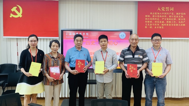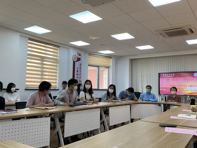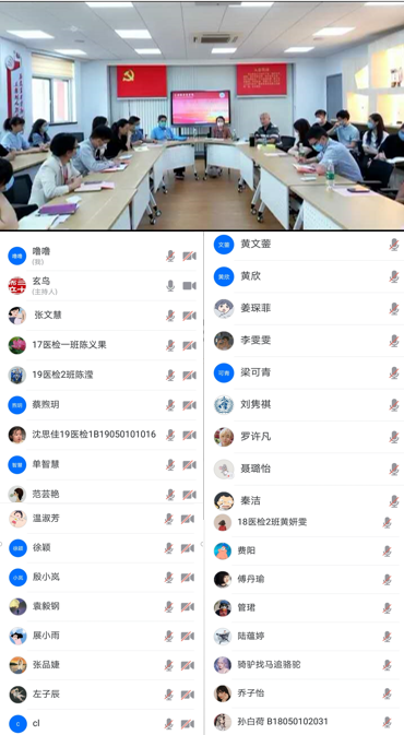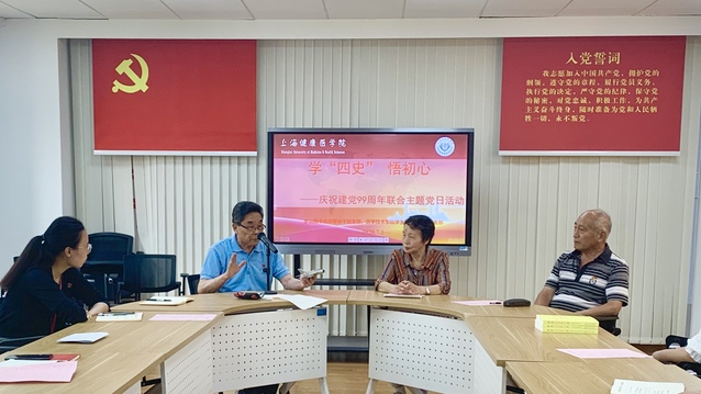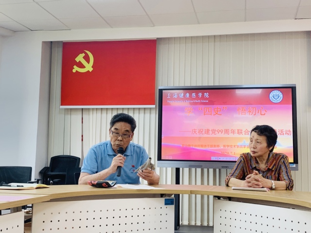 7月1日上午9点,正值建党99周年之际,医学技术学院学生第一、第二党支部与浦东新区罗山路干休所军休干部党支部在北苑4507院党建服务中心联合进行了一场——学“四史”、悟初心联合主题党日活动。罗山路干休所江炳书、王源、董仁娣三位老党员及医学技术学院学生第一、第二党支部党员、发展对象和积极分子参加,未返沪同学通过视频会议直播全程参与。