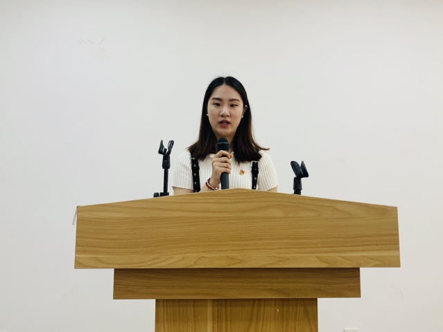 随后,学院两位青年党员何之渊、陆艳梅和入党积极分子徐桢从自身视角谈了新中国的变化,展示了他们眼中的新中国。何之渊从古时的四大发明讲到现在的高铁、共享单车、移动支付、网购“新四大发明”,从《舌尖上的中国》到“胖五”携新火箭新飞船首飞告捷,从派出军舰用最短的速度接索马里亲人回家到北斗导航系统组网成功,作为新青年,我们生逢其时,也应重任在肩。陆艳梅从一个浦东人的视角,讲述了衣食住行在近20年的变化,从轮渡到越江隧道、跨江大桥,从陆家嘴到自由贸易试验区,从烂泥渡路到银城路,这些变化都展现出了浦东新区30年的艰苦奋斗,30年的敢闯敢拼。入党积极分子徐桢从爷爷的电瓶车被盗讲到了小区里停车场建设和管理逐步规范化的历程,从自己家门前那一到夏天就满是水葫芦的河流,讲到了现在生态文明建设成效越来越显著。