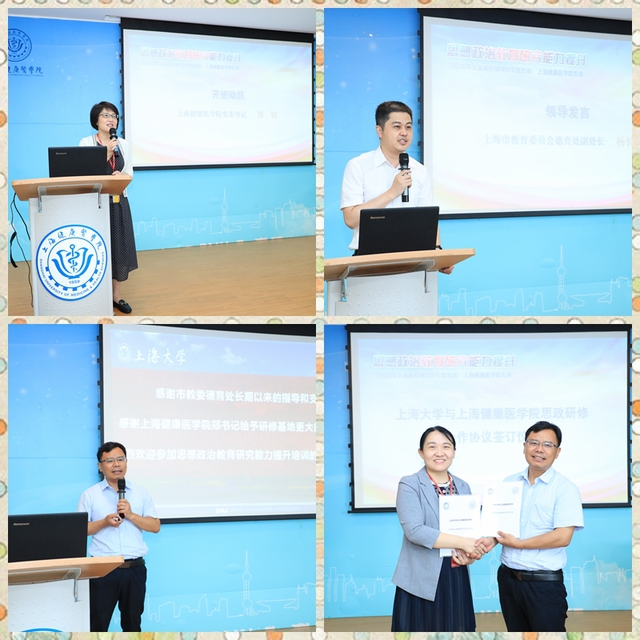 开班启动仪式上,上海健康医学院和上海大学签署了思想政治教育研修合作协议。两校将开展为期三年的交流合作,共同为辅导员队伍搭建线上交流和线下分享思政研究及思政教育工作经验的平台和载体。两天的培训邀请了复旦大学国际关系与公共事务学院教授、博士生导师邱柏生、上海市教育科学研究院主办的全国中文核心期刊、CSSCI来源期刊《思想理论教育》杂志执行编辑朱国栋等专家做“理论修养和科研能力”、“辅导员开展思政研究的思考”等专题讲座,并安排了华东师范大学、上海大学、上海中医药大学优秀的专家型辅导员主持 “课题申请和选题”、“论坛征文和论文撰写发表”等实践训练。