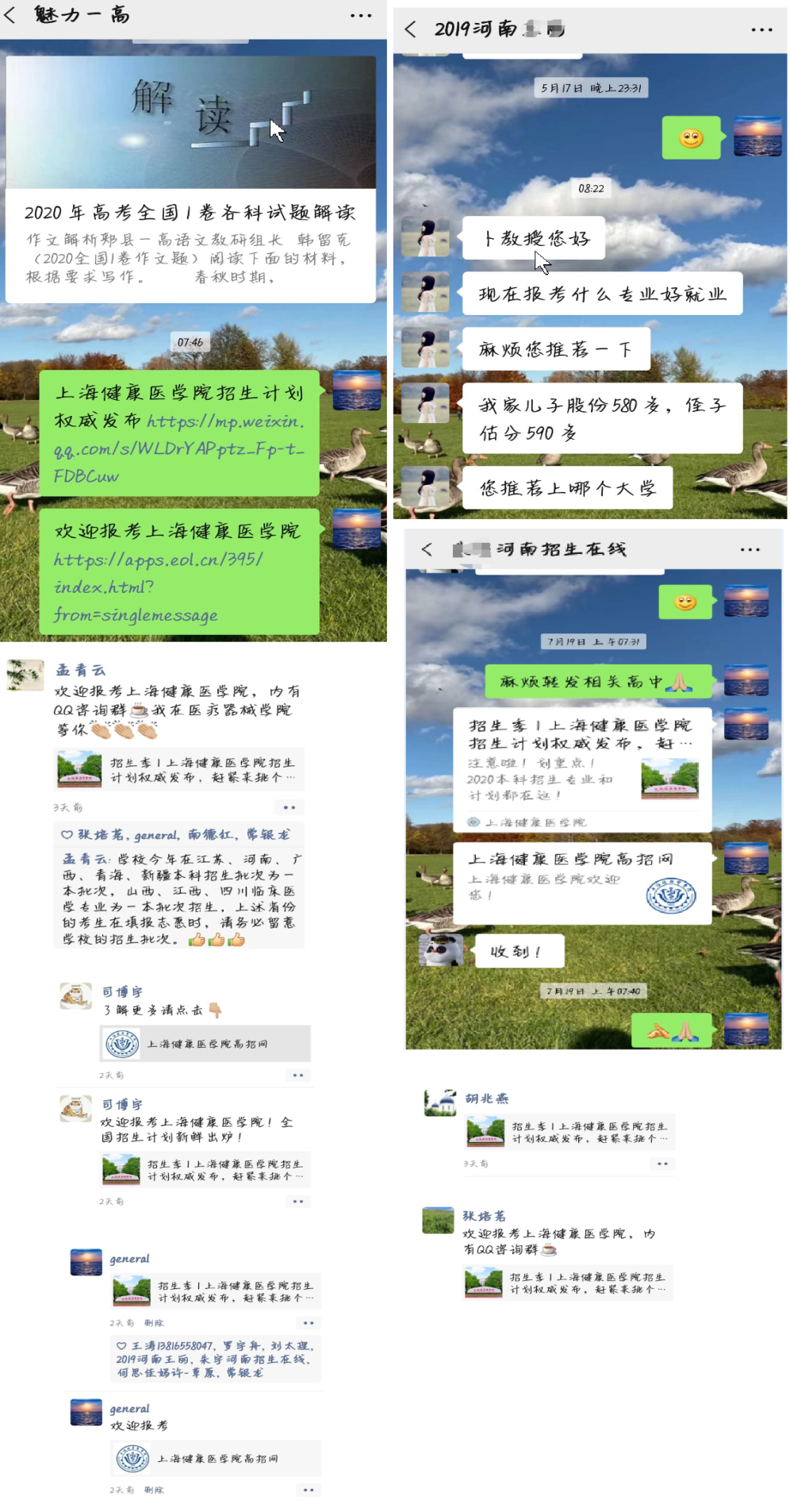 “在线”结识新朋友,精准宣传叙真情。医疗器械学院的老师们积极拓宽交流渠道,通过QQ、微信、电话、网络等方式为有需要的家长、考生细致讲解学校的招生政策、专业详情、发展方向、就业去向、校园文化、奖勤补贷等信息,为家长、考生解疑答惑。学院对前几年走访、宣讲过的上海、河南、云南等省区的100多所高中,安排以往老师视频、电话回访,继续将最新的资讯传播过去。
