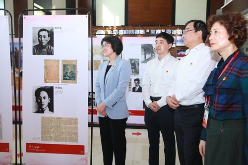 庆祝活动后,校领导和师生一同参观由学校与中共一大会址纪念馆共同举办的《星火相传——“四史”学习教育进校园主题展》。