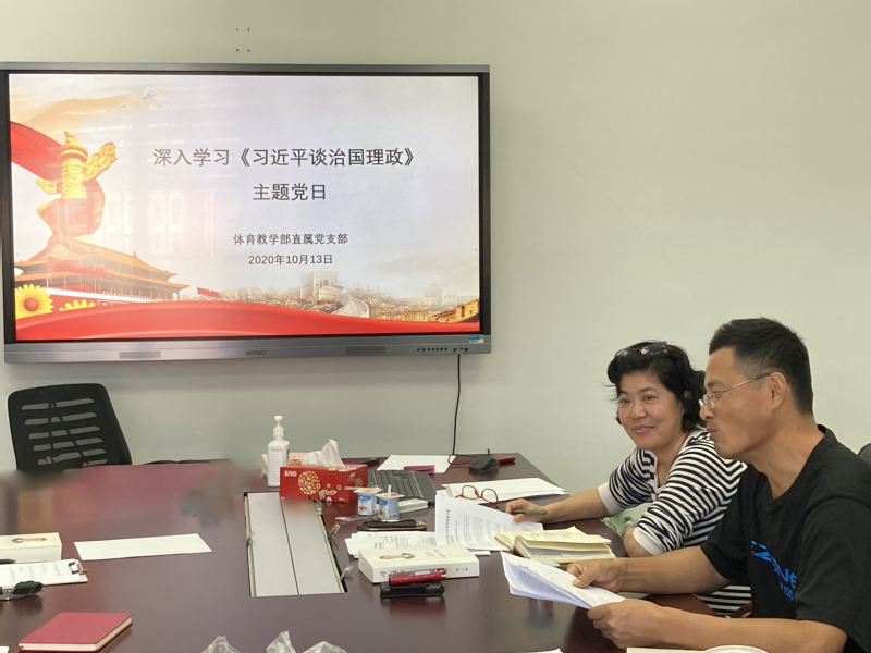 为了更好的将“四史”学习教育工作要求落实到位,10月13日中午12:00在南苑1号楼307会议室召开深入学习《习近平谈治国理政》主题党日,会议由直属党支部书记郁建新主持,学部全体党员参加,4名非党员列席此次会议。