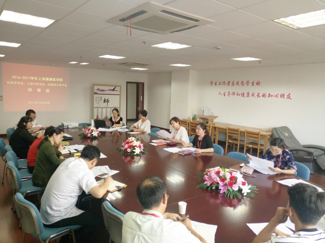 10月9日下午,上海健康医学院2016-2017学年国家奖学金、国家励志奖学金和上海市奖学金评审会在北苑1号楼504召开。评审委员会13成员、3名学生代表参加评审会。