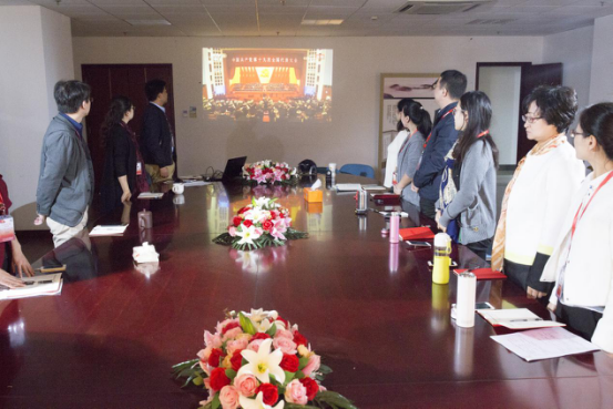 10月18日上午八点半,学工党支部全体党员早早的来到了502会议室,一起怀着激动的心情等待中国共产党第十九次全国代表大会的召开。九时许,随着十九大开幕式的开始,集体观看的17名学工支部党员全体起立,跟着现场一起高唱国歌,并随后进行了集体起立默哀。习总书记全程三个多小时的工作报告,大家聚精会神的听,认真仔细的记,时不时与现场的参会代表一起鼓掌。