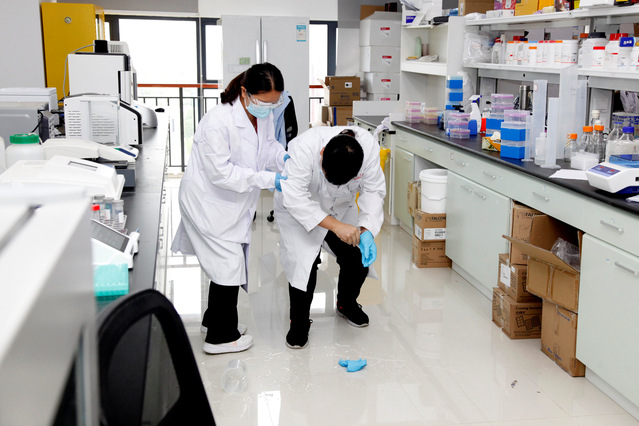讲座结束后在新南苑协同科研平台4楼实验室进行了实验室危化品盐酸泄漏事故应急演练,协同科研中心实验室的师生及相关职能处室和分管校长孔宪明20余人参加了应急演练,各二级单位实验室主任进行现场观摩。整个演练过得包括:模拟盐酸泄漏事故的发生,现场事故伤员的初步处理、现场人员疏散,上报校实验室安全工作小组、医务处救治处理、现场泄漏物处置等。在整个应急演练过程中,各参演人员行动迅速,严格按照应急预案进行,30分钟内完成了实验室全体人员的疏散、上报及泄漏问题的处理工作。