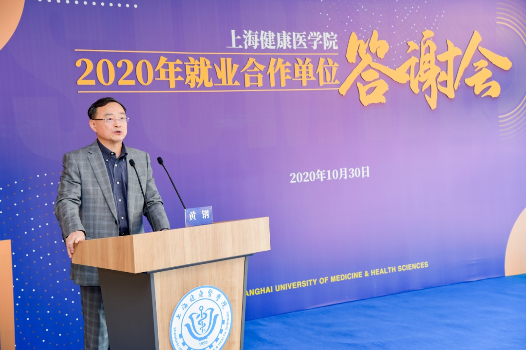 日前,在上海健康医学院隆重举行了2020年就业合作单位答谢会。近50家与学校长期紧密合作的各级医疗卫生单位、企事业单位的领导和科室负责人应邀参加。上海健康医学院校长黄钢,副校长沈国芳,各二级学院院长以及相关职能部门负责人出席了答谢会。