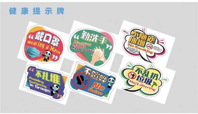 另外,同学们还认领到了许多手持牌,通过各自分场地的“暴走”,将“戴口罩”“不扎堆”“勤洗手”等健康小标识的中英文提示,向参展观众予以强化。